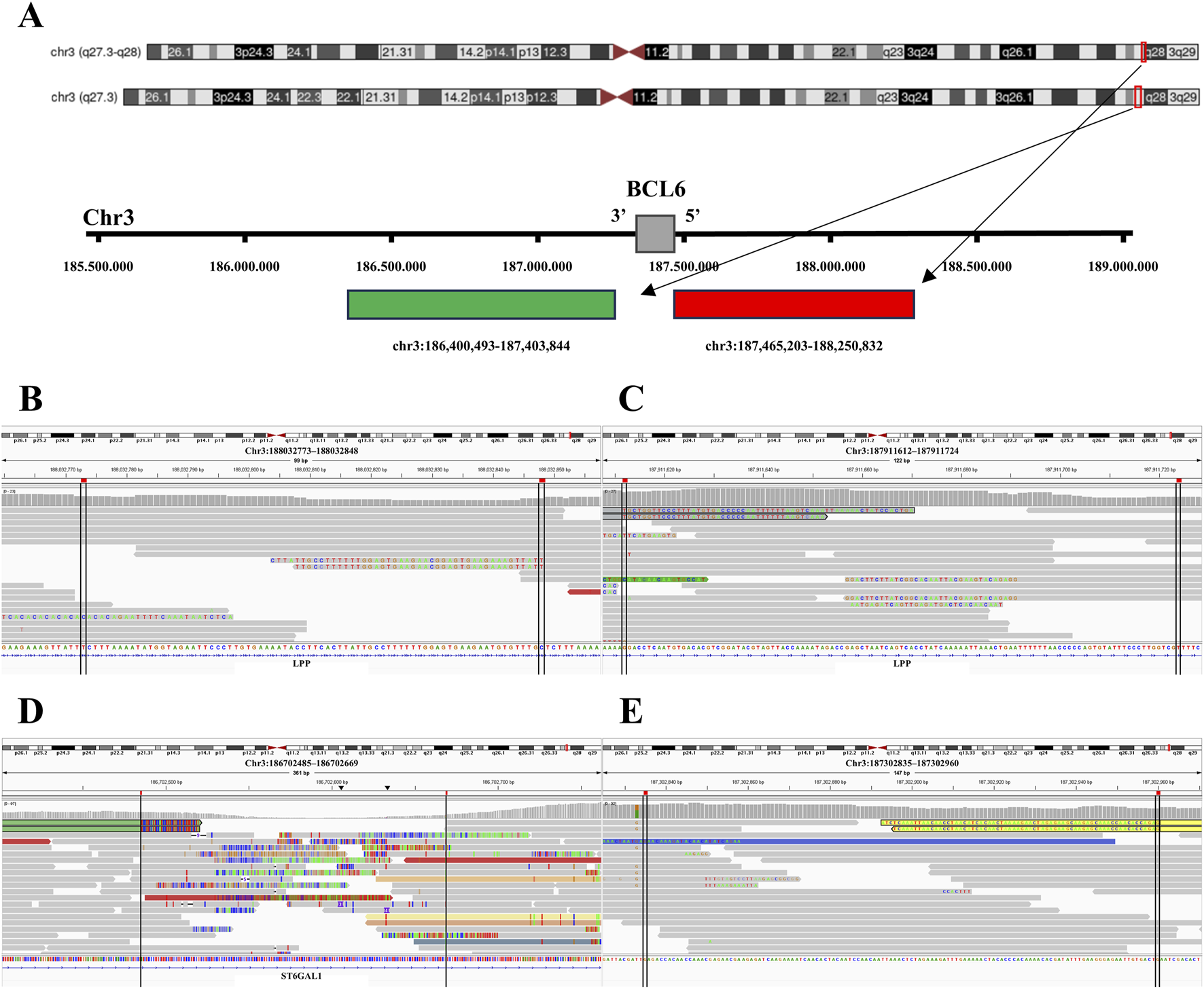 | BCL6 | 3′region | chr3:186,885,412–186,886,257 | 845 |