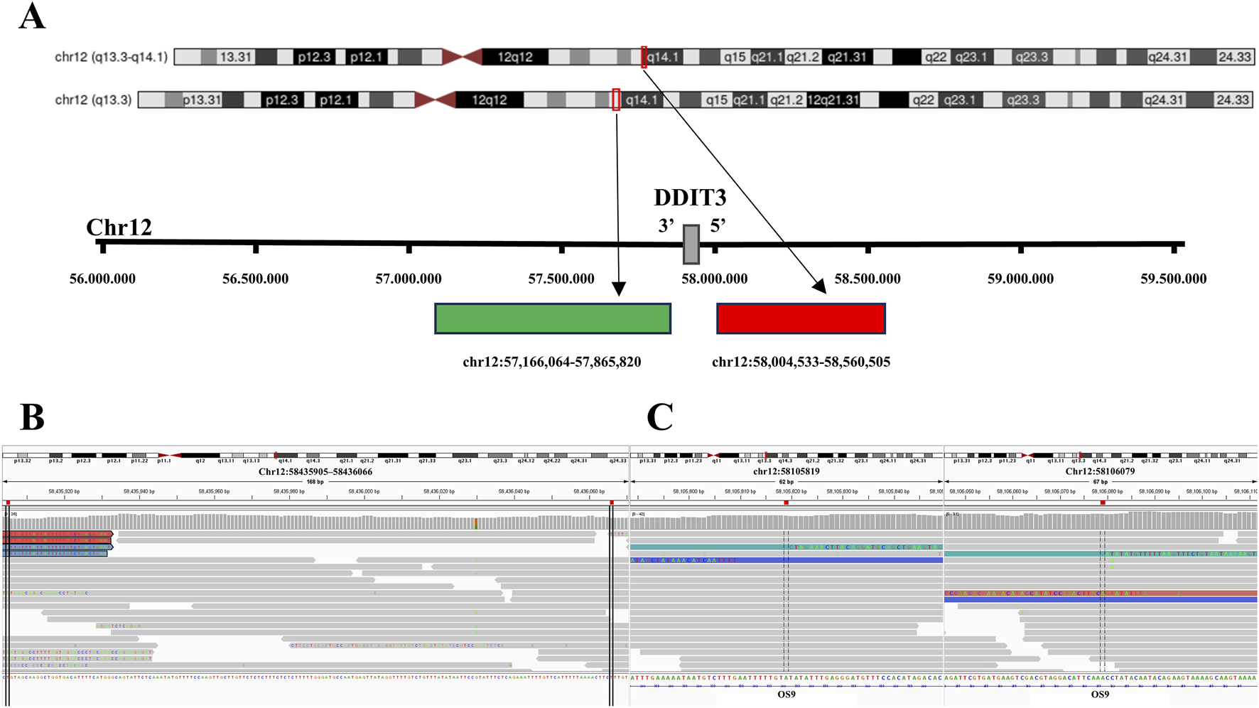 | DDIT3 | EWSR1 | chr12:57,912,112; chr22:29,683,370 | 14 | 6 | 8 |